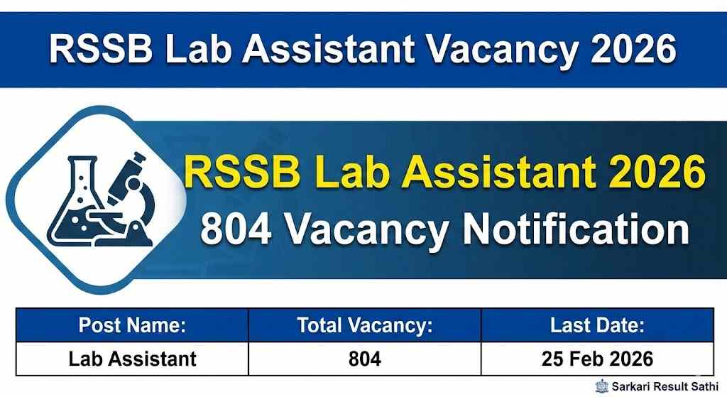 The Rajasthan Staff Selection Board (RSSB) has released the official notification for the RSSB Lab Assistant Recruitment 2026. Through this recruitment, 804 posts of Lab Assistant (Science & Geography) and Junior Lab Assistant will be filled in departments such as Secondary Education, Agriculture, and Forensic Science.